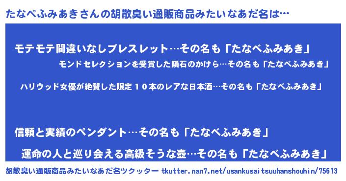 | 意味不明あだ名 | 『住所不定無職たなべふみあき(39歳)』 |