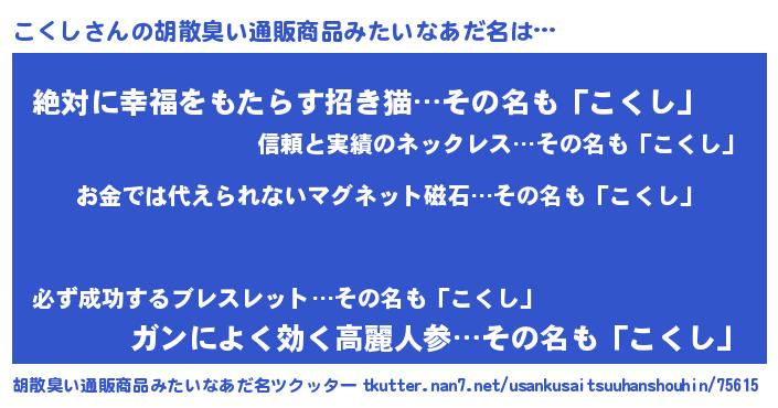 | 女子向けラノベタイトル風あだ名 | 『こくし恋絵巻』『首の姫と首なしこくし』 |
