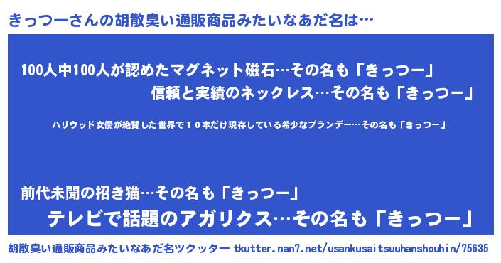 | 意味不明あだ名 | 『住所不定無職きっつー(95歳)』 |
