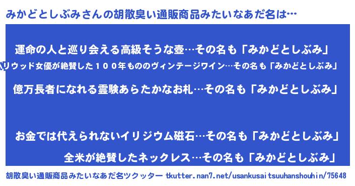 みかどとしぶみさんの胡散臭い通販商品みたいなあだ名をツクッター!