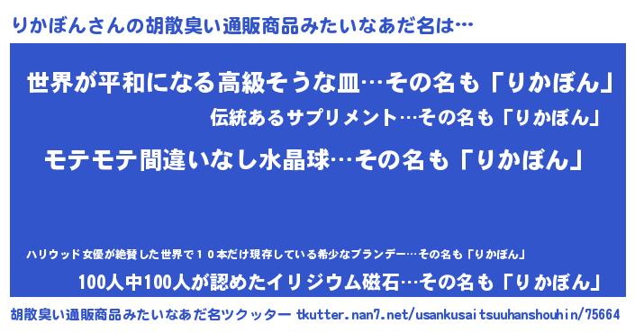 | ヘコむあだ名 | 『りかにゅー』『なまこ酢』 |