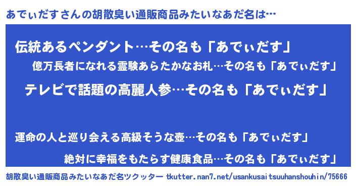| 意味不明あだ名 | 『自称あでぃだす』『永久保存あでぃだす』 |