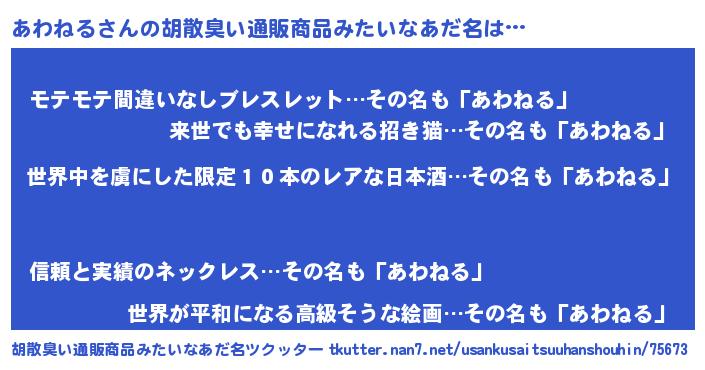 | 女子向けラノベタイトル風あだ名 | 『乙女ゲームの破滅フラグしかない悪役あわねるに転生してしまった…』 |