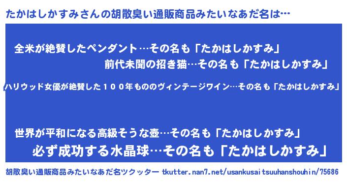 | 意味不明あだ名 | 『住所不定無職たかはしかすみ(2歳)』 |