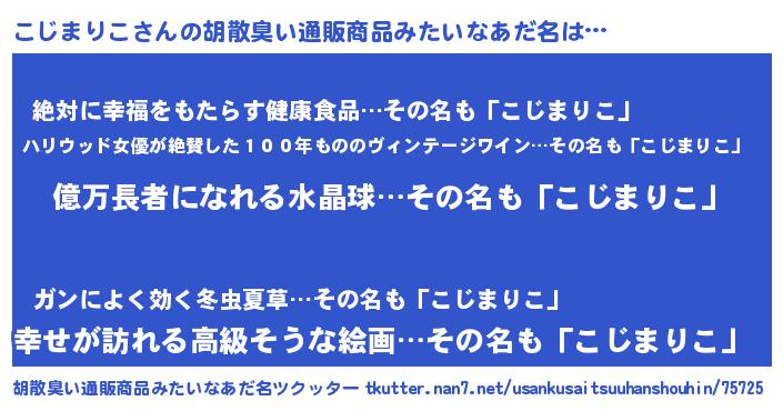 | 男性向けラノベタイトル風あだ名 | 『こじまりこに滅ぼされるだけの簡単なお仕事です』 |