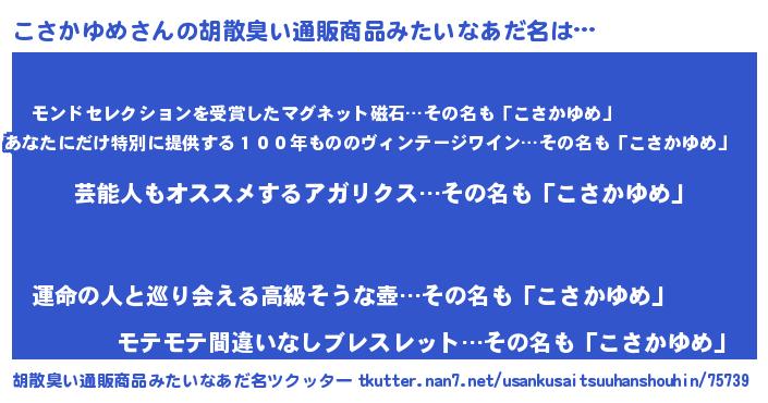 | 肩書あだ名 | 『こさかゆめ閣下』『こさかゆめ教授』 |