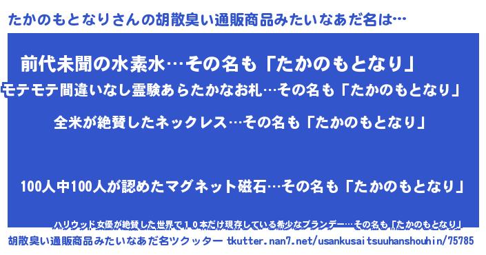 | ヘコむあだ名 | 『たか太郎』『たかのもとなり(遠い目)』 |