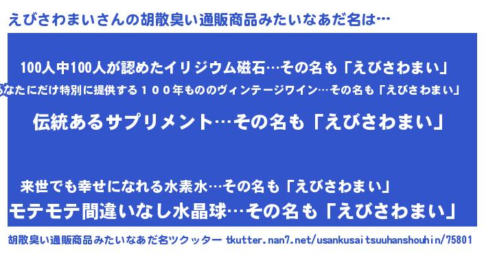 | 意味不明あだ名 | 『とにかく怪しいえびさわまい』 |