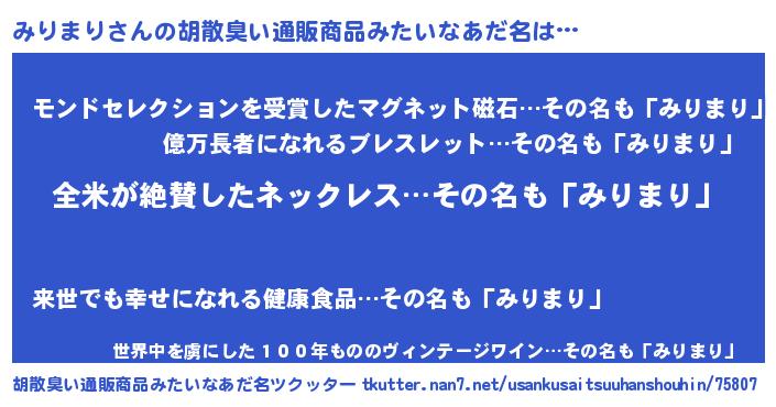 | 意味不明あだ名 | 『とにかく怪しいみりまり』 |