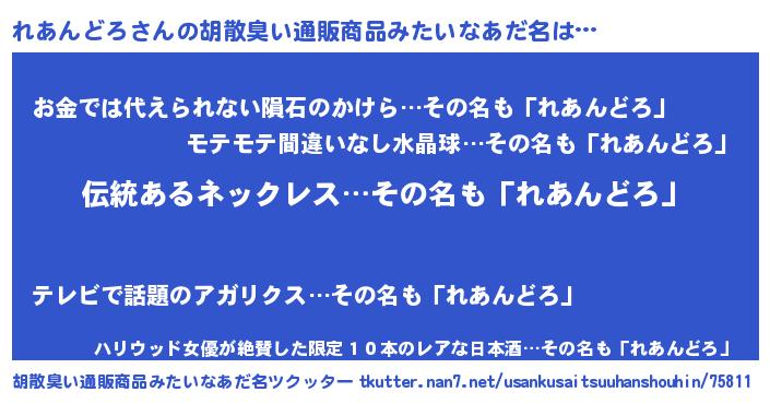 | 男性向けラノベタイトル風あだ名 | 『れあんどろの嫁は女の子じゃないと思った?』 |