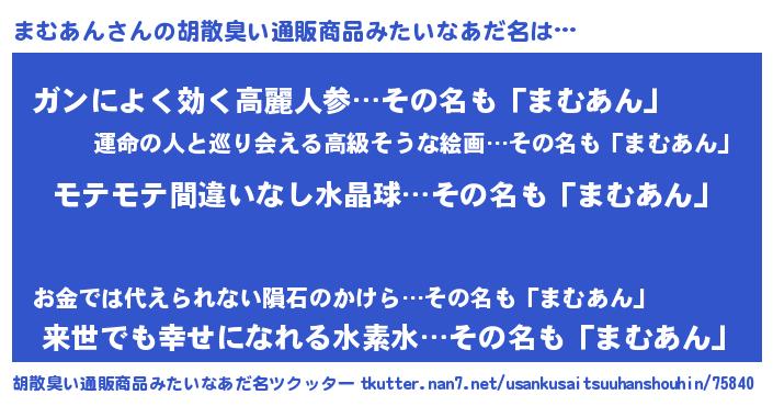 | 意味不明あだ名 | 『ペロリンまむあん』『自称まむあん』 |