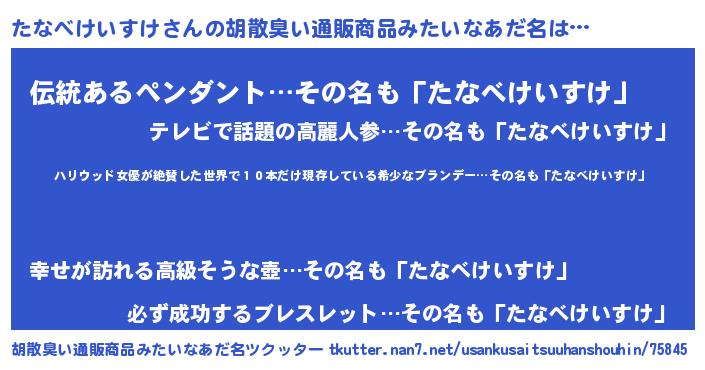 | 料理風あだ名 | 『たなべけいすけのカルパッチョ風』 |