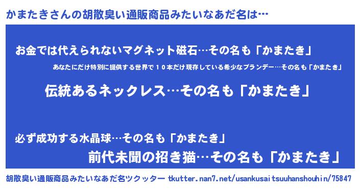 | 意味不明あだ名 | 『とにかく怪しいかまたき』 |