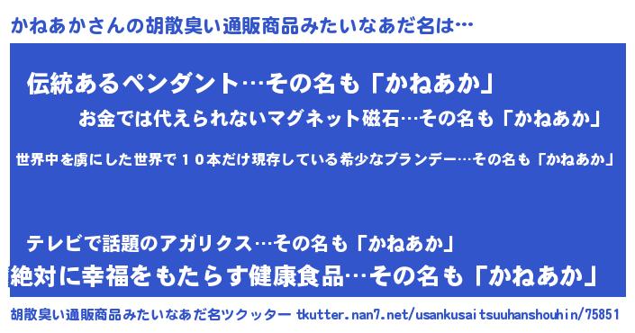 | ヘコむあだ名 | 『かねっぺ』『かねあか(苦笑)』 |