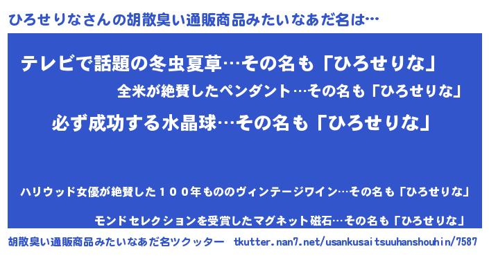 | 男性向けラノベタイトル風あだ名 | 『ヒロセリナスレイヤー』 |