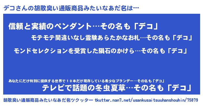| 男性向けラノベタイトル風あだ名 | 『ノーゲーム・ノーデコ』『緋弾のデコ』 |