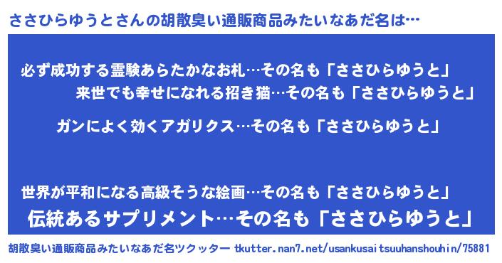| 意味不明あだ名 | 『自称ささひらゆうと』 |