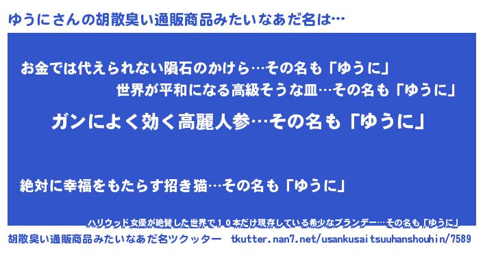 | ヒーロー風カッコイイあだ名 | 『ウルトラ戦士ユウニ』『愛の使者ゆうに』 |