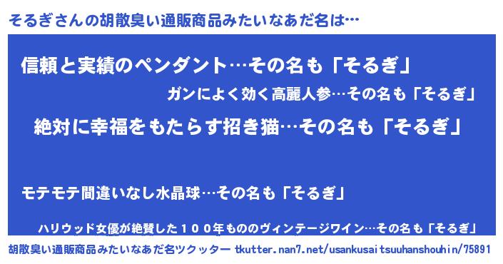 | ヘコむあだ名 | 『そるぎ(笑)』『そるぷりん』『牛乳』 |