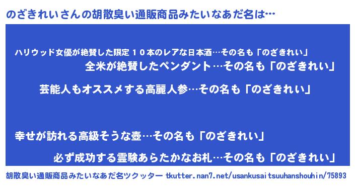 | 男性向けラノベタイトル風あだ名 | 『Re:のざきれいから始める異世界生活』 |