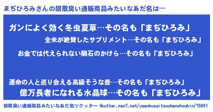 | 男性向けラノベタイトル風あだ名 | 『おまえをオタクにしてやるから、俺をまぢひろみにしてくれ! 』 |