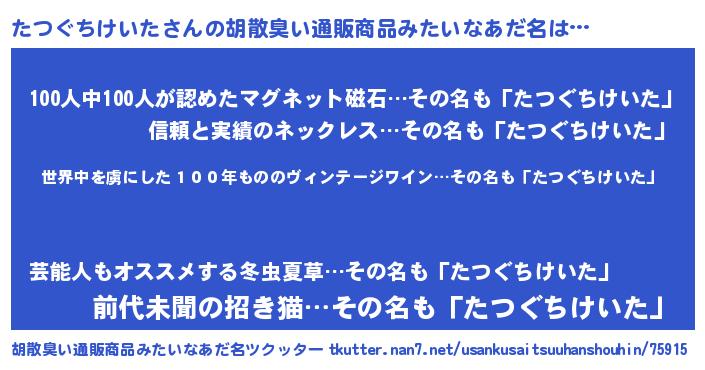 | 欧米人風あだ名 | 『ダレノガレたつぐちけいた』 |