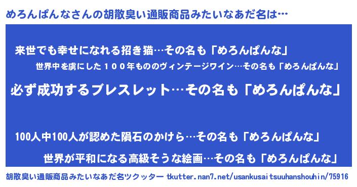 | ヘコむあだ名 | 『めろにー』『めろんぱんな(小並感)』 |