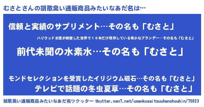 | ヘコむあだ名 | 『むさと(遠い目)』『むさお』 |