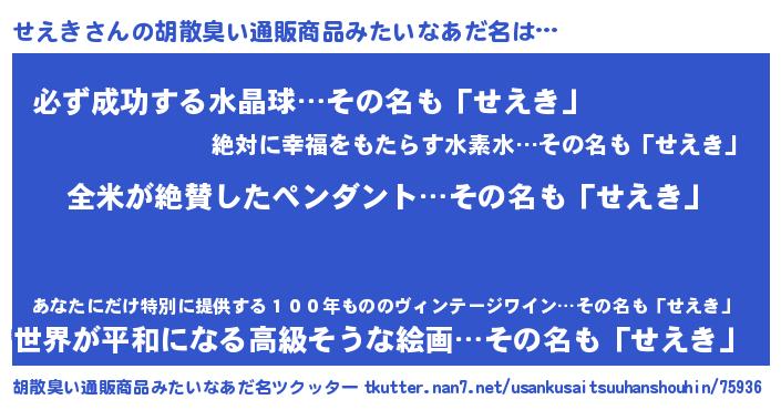 | 意味不明あだ名 | 『とにかく怪しいせえき』 |
