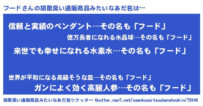 | 意味不明あだ名 | 『永久保存フード』『自称フード』 |