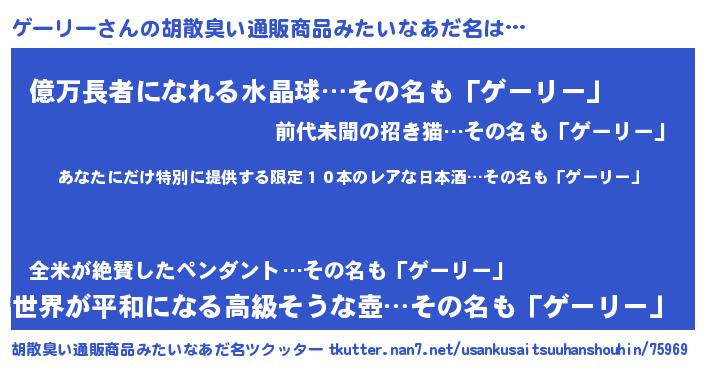 | 男性向けラノベタイトル風あだ名 | 『この素晴らしい世界にゲーリーを!』 |