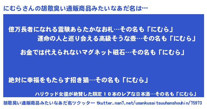 | ヒーロー風カッコイイあだ名 | 『慈愛の使者にむら』『スーパーニムラ』 |