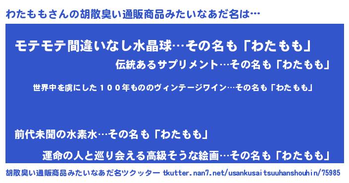 | 意味不明あだ名 | 『住所不定無職わたもも(2歳)』 |