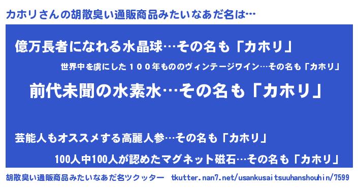 | ヘコむあだ名 | 『カホリ(遠い目)』『カホっふぃ~』 |