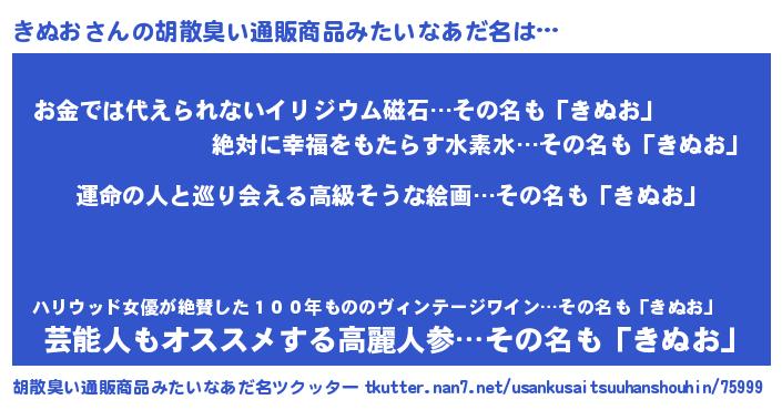 | 意味不明あだ名 | 『きぬおフォーエバー』『自称きぬお』 |