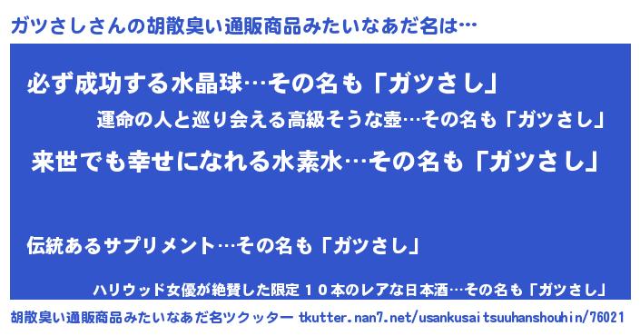 | ヘコむあだ名 | 『ガツさし(遠い目)』『ガツもー』 |
