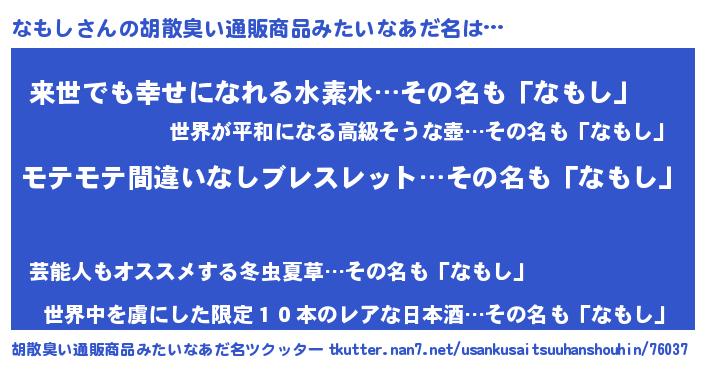 | ヘコむあだ名 | 『なもにー』『なもし(震え声)』 |