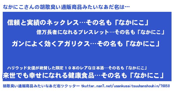 | 意味不明あだ名 | 『自称なかにこ』『永久保存なかにこ』 |