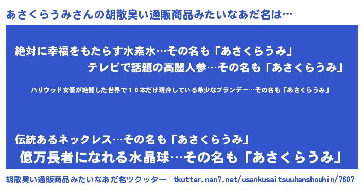 | ヘコむあだ名 | 『あさくらうみ(苦笑)』『あさもー』 |