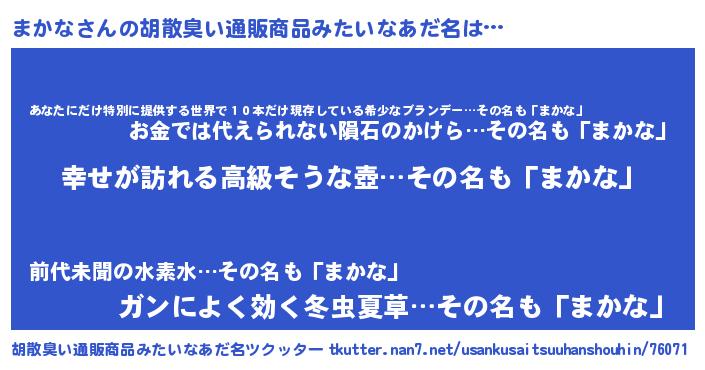 | 恥ずかしいあだ名 | 『まかっちょ』『マカナデラックス』 |