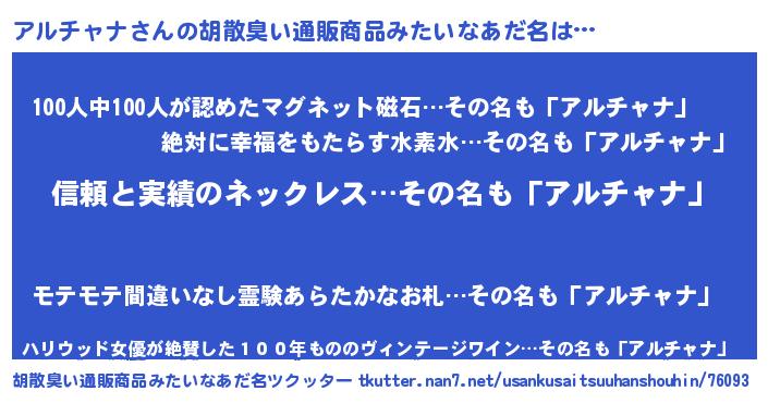| ヘコむあだ名 | 『アルっぺ』『アルチャナ(小並感)』 |