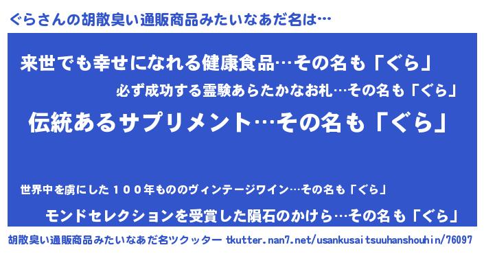 | 意味不明あだ名 | 『とにかく怪しいぐら』『永久保存ぐら』 |