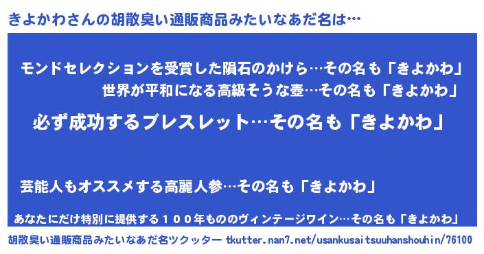 | ヒーロー風カッコイイあだ名 | 『スーパーキヨカワ』『愛の使者きよかわ』 |