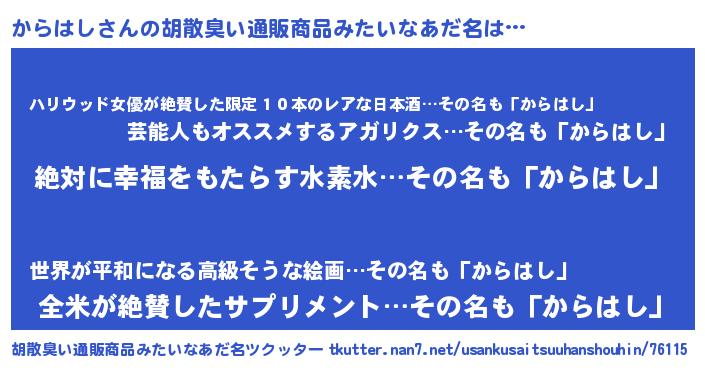 | 意味不明あだ名 | 『永久保存からはし』『自称からはし』 |