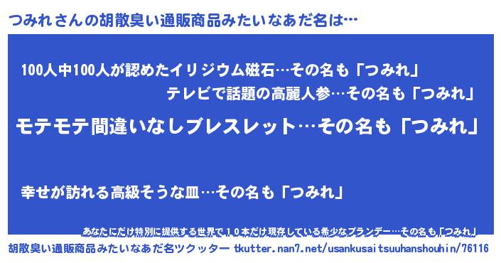 | ヘコむあだ名 | 『つみにー』『牛乳』『つみっ子』 |