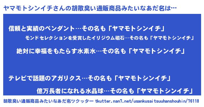 | 欧米人風あだ名 | 『アンジェラ・ヤマモトシンイチ』 |