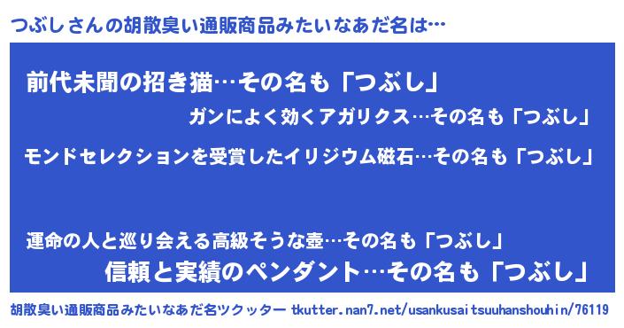 | 男性向けラノベタイトル風あだ名 | 『ノーゲーム・ノーツブシ』 |