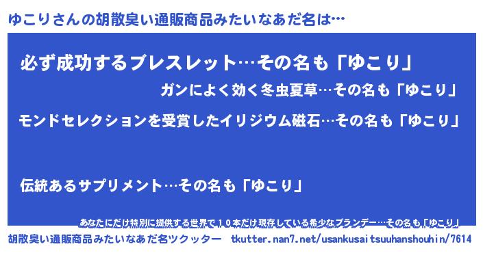 | ヒーロー風カッコイイあだ名 | 『慈愛の使者ゆこり』『スーパーユコリ』 |