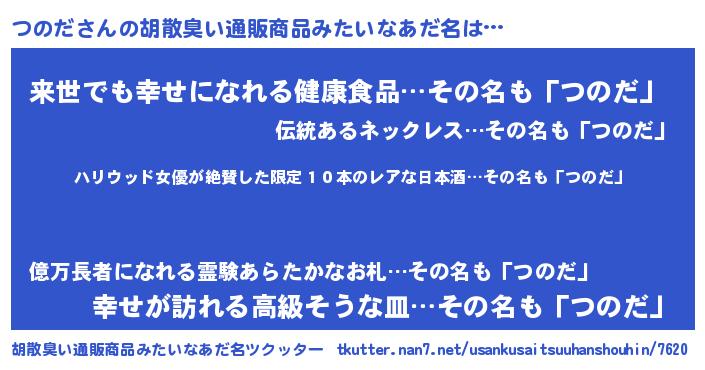 | 意味不明あだ名 | 『住所不定無職つのだ(62歳)』 |