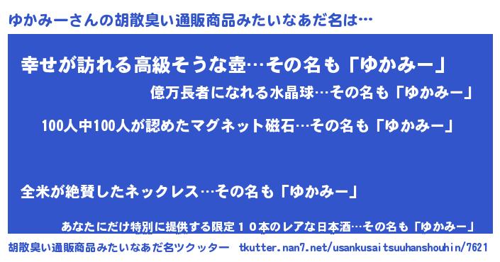 | ヒーロー風カッコイイあだ名 | 『正義の使者ゆかみー』『仮面ユカダー』 |